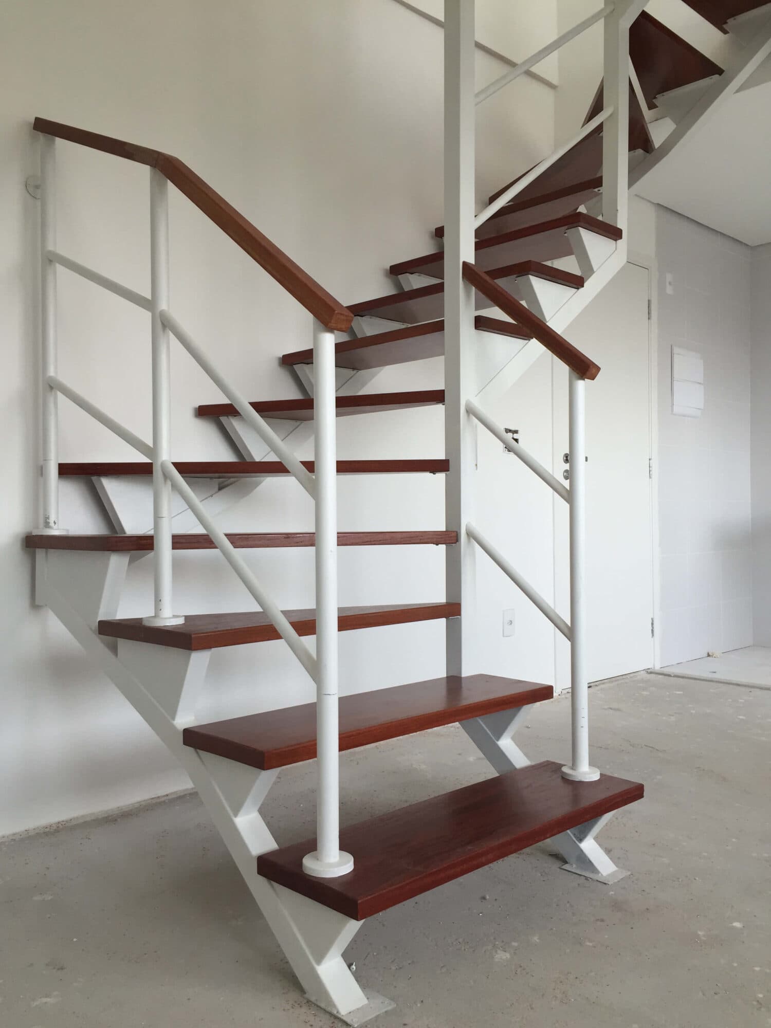 Fabricamos e instalamos as 8 escadas dentro do prazo estabelecido. Instalamos inicialmente as escadas com degraus provisórios, para que a escada pudesse ser usada durante a obra.