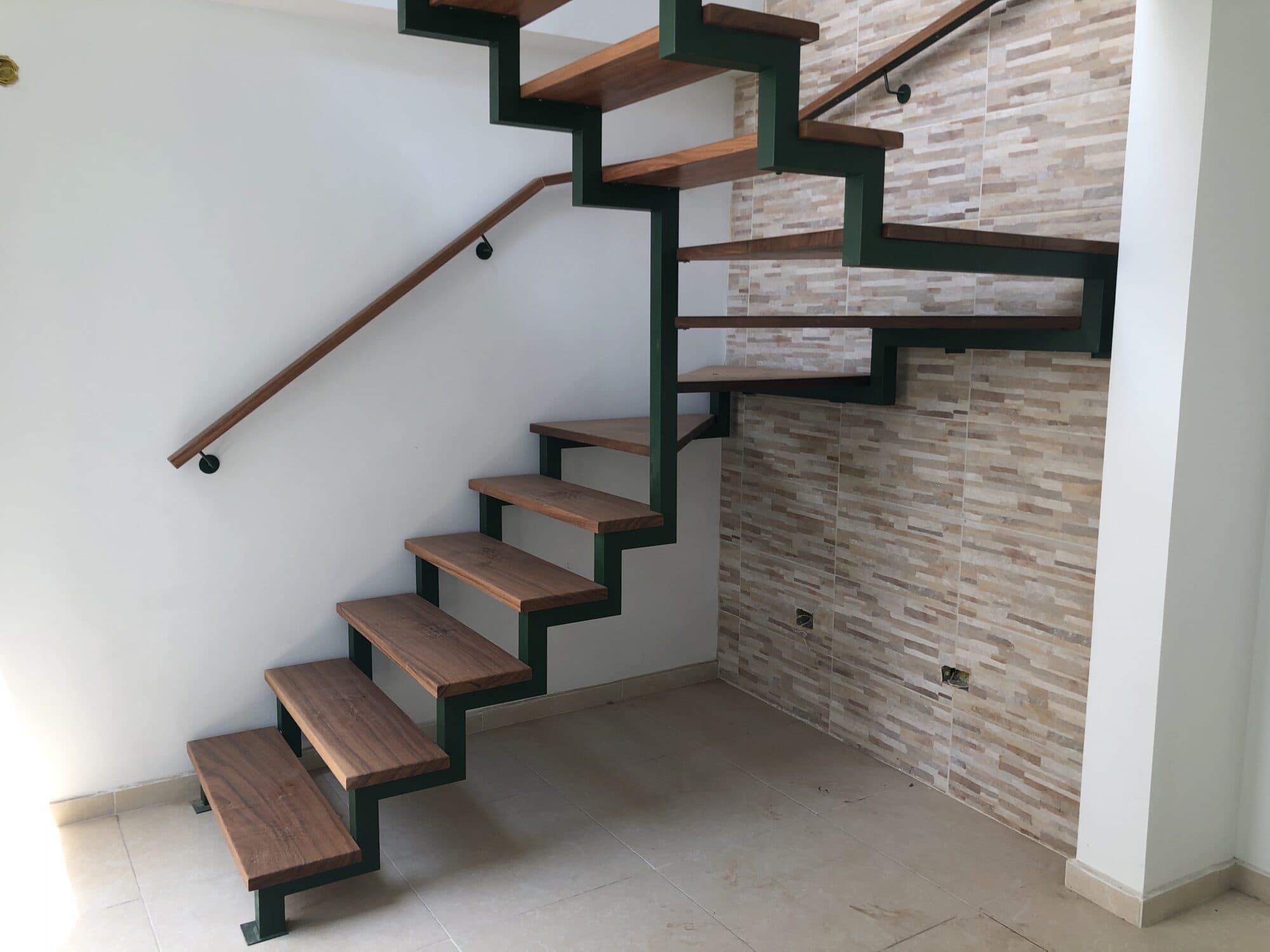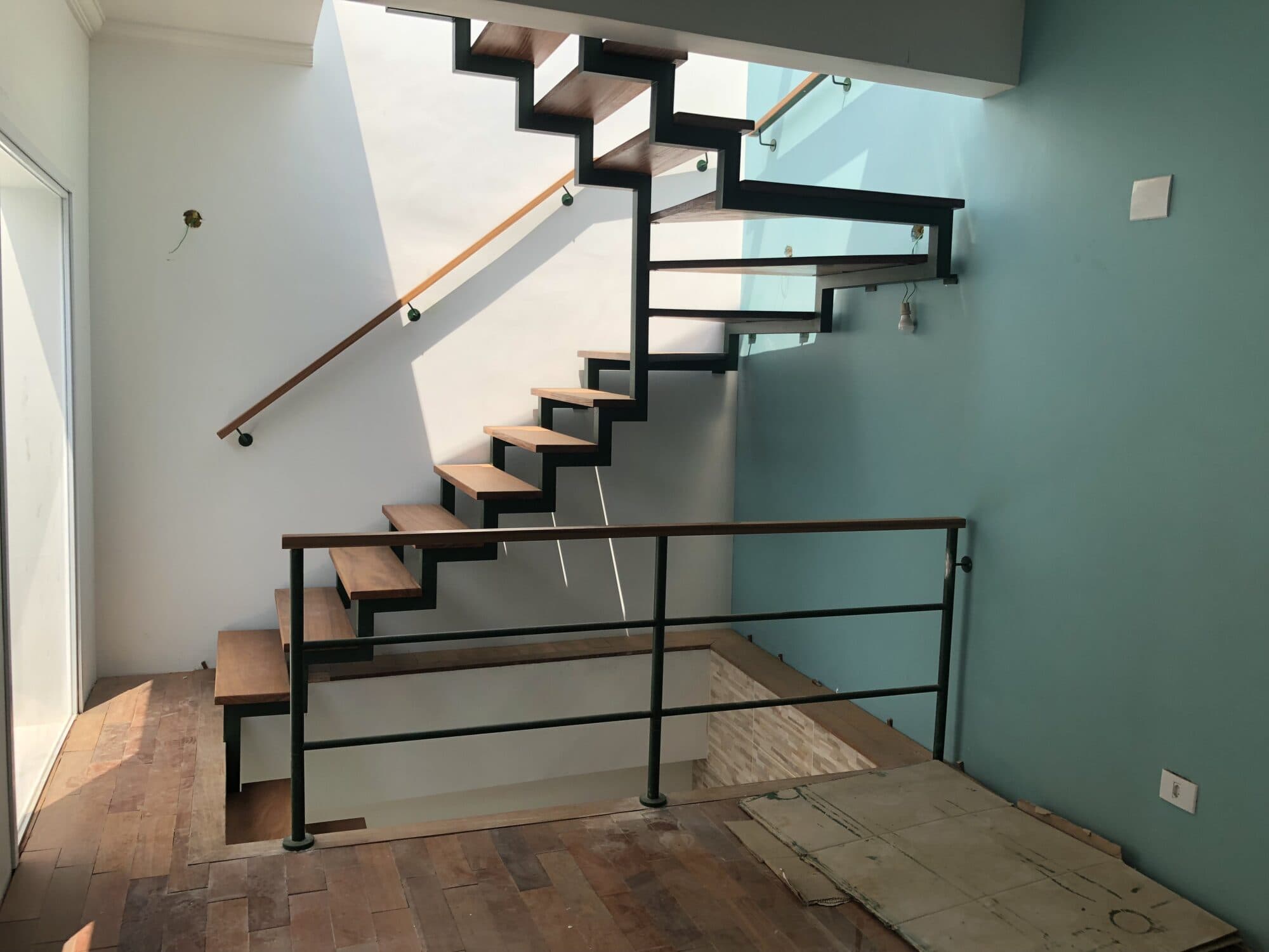 O cliente estava construindo uma casa de 3 andares, e buscava uma solução para 2 escadas internas, uma sobre a outra.