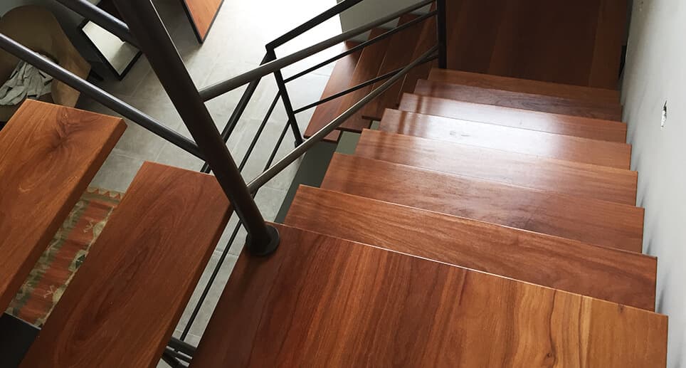 Graças ao nosso processo de fabricação, que prevê todos os detalhes do local onde a escada será instalada, a escada segue para a obra praticamente pronta. A instalação é muito rápida, simples e sem sujeira.